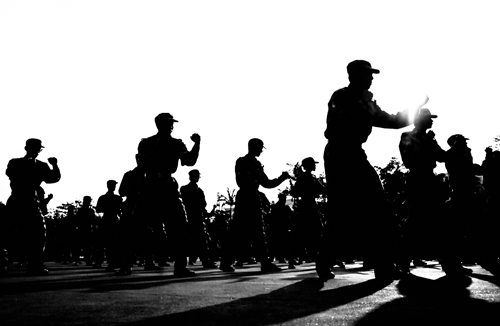 本网讯 1月9日上午,学校党委赵日兴副书记带领学校武装部和学工部门负责人,检阅了学生军训队列情况。赵副书记对军训队伍良好的精神面貌和整齐划一的口号,给予了充分的肯定。