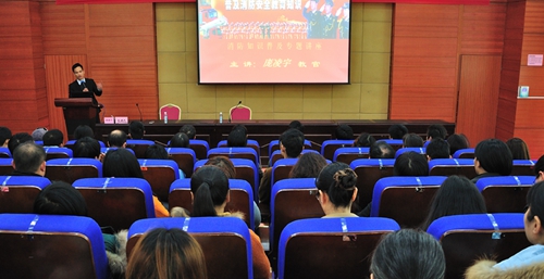 本网讯 为进一步增强实验室管理人员的消防安全意识,提高安全防范能力和水平,1月13日下午,教务处与教育技术中心在文城视频会议厅联合开展“消防安全无小事,建设平安实验室”为主题的消防安全知识讲座,特邀省消安防火宣传中心宣教部主任庞凌宇教官,为我校各教学系(部)和教育技术中心实验室管理员、教师,以及教务处工作人员60多人做讲座。