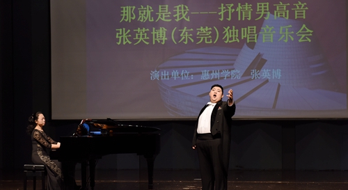本网讯 近日,我校音乐系教师张英博在东莞玉兰大剧院举行《那就是我——张英博独唱音乐会》,借助美妙的歌声带给东莞听众心灵的熏陶和新春的祝福,赢得大家的赞赏。在音乐会上,张英博与助演嘉宾们演唱了《经过风暴》、《我的太阳》、《饮酒歌》、《那就是我》等21首中外名曲,赢得现场观众阵阵热烈的掌声。