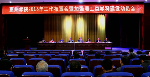彭永宏表示,“十二五”期间,我校的办学规模适度扩大、内涵建设不断提升。学校的人才培养、师资队伍建设、科学研究与学科建设、服务区域经济社会文化发展等方面都取得了显著成绩,发展中我校的办学经费、后勤服务等办学保障也得以加强。他强调,我们在总结成绩的同时,也要正视不足,寻找学校发展存在的差距症结所在,进一步充实学校的内涵,凸显办学特色。“十三五”期间,学校将以立德树人为根本任务,以创新人才培养模式为突破口,以深化教育综合改革为动力,不断加强“四重”建设,深入推进“创新强校工程”和“强师工程”,全面推进办学的应用型转变,提升办学水平和人才培养质量。2016年是 “十三五”起步之年,学校的重点工作是:坚持建设特色鲜明高水平应用型地方本科高校的发展定位,科学编制“十三五”规划;转变办学思路,深化体制机制改革,全面推动学校向应用型院校转变;确定学科发展战略,加强理工类学科建设,繁荣发展人文类学科,稳定扶持特色发展一般学科;优化专业结构调整、深化协同育人的机制体制;加强队伍建设,共同营造和谐团结的工作氛围;加大国际交流合作力度,做好服务惠州工作;做好学生就业创业工作,同时办好学校70周年校庆。