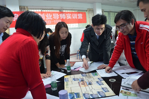 导师训练营由创业咨询师耿建星老师主讲,他带领学员开展“团队建设沙盘”、“创业模拟演练沙盘”以及“创业咨询沙盘”等活动,通过体验式教学,结合国内外多个真实创业案例分析以及担任全国创业大赛评委的经验,围绕如何帮助学生梳理创业思路和搭建创业体系、掌控创业项目的核心竞争力、指导大学生挑战杯创业大赛等进行了培训。