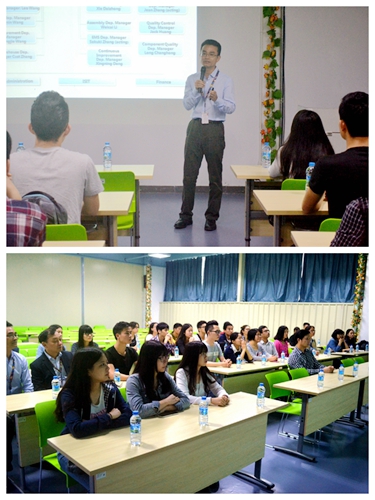 TCL通讯高级副总裁、全球制造中心总经理吕小斌热情接待了经管系师生,详细介绍了制造基地的基本情况、工艺流程、自发研制的先进仪器设备以及TCL企业文化等。学生干部通过参观中深刻领会到,企业的硬件建设和软件建设同等重要,好的硬件设施能提高效率,良好的企业文化则凝聚员工的生产动力。