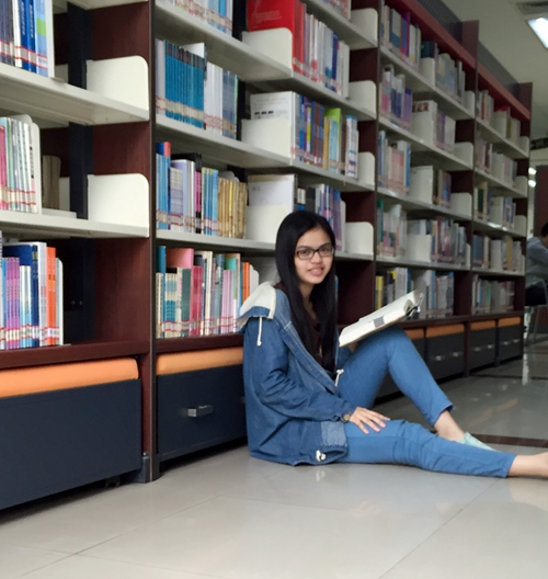 杨晓婷同学在图书馆读书