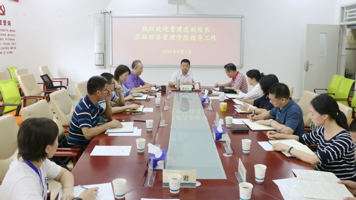 9月2日下午,曹建忠到经济管理学院调研指导工作,学院全体班子成员、系(中心)主任和大湾区惠州发展研究院院长参加了调研座谈。院长王兴邦就学院基本情况、办学理念、师资力量及发展规划等方面进行了汇报。学院党总支书记郑良才就抗疫防疫、党建工作、迎新工作、课程思政等方面进行了汇报。其余参会人员分别就分管工作和下一步工作计划进行了汇报。