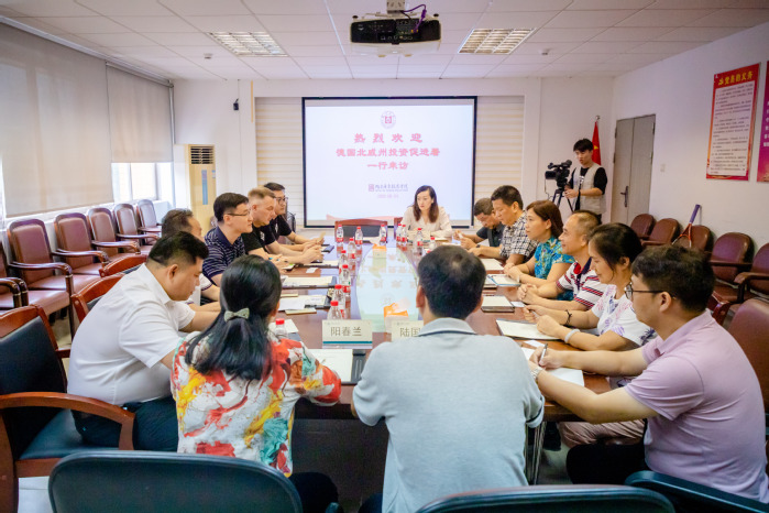 本网讯 9月4日上午,德国北威州投资促进署广州办事处主任梁杰、门兴格拉德巴赫俱乐部大中华区总经理Martin Thiess、门兴格拉德巴赫俱乐部大中华区项目经理凌轩、广东中欧企业合作中心主任郑勇强一行到访我校,惠州市外事局二级调研员张艺军及相关科室负责同志随同访问。我校国际交流合作处、旭日广东服装学院、体育学院相关负责人陪同来宾一行参观了旭日广东服装学院并举行座谈。座谈会由国际交流合作处负责人主持。